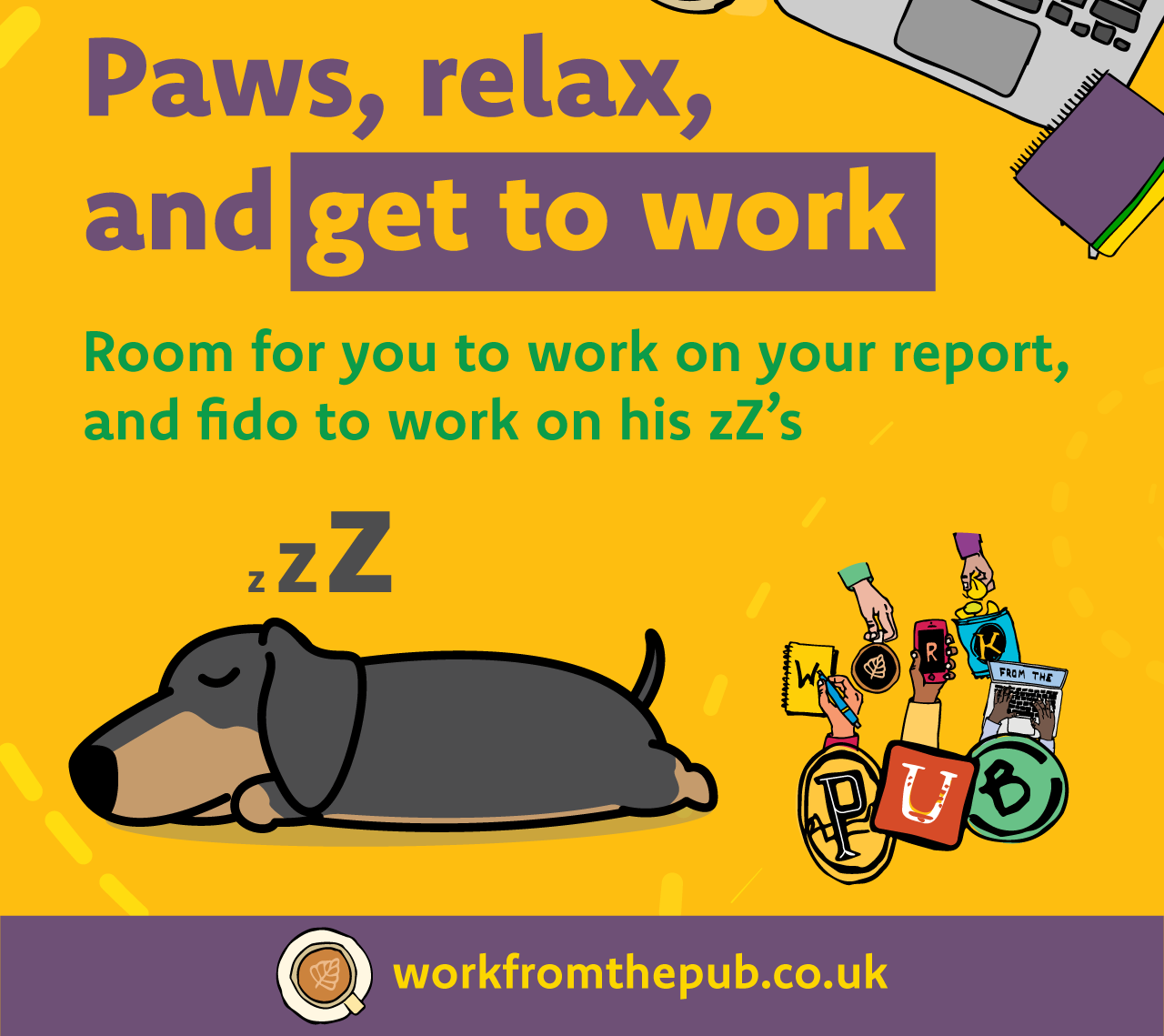 When working from the pub, enjoy a free hot drink on mention of the workfromthepub.co.uk scheme.